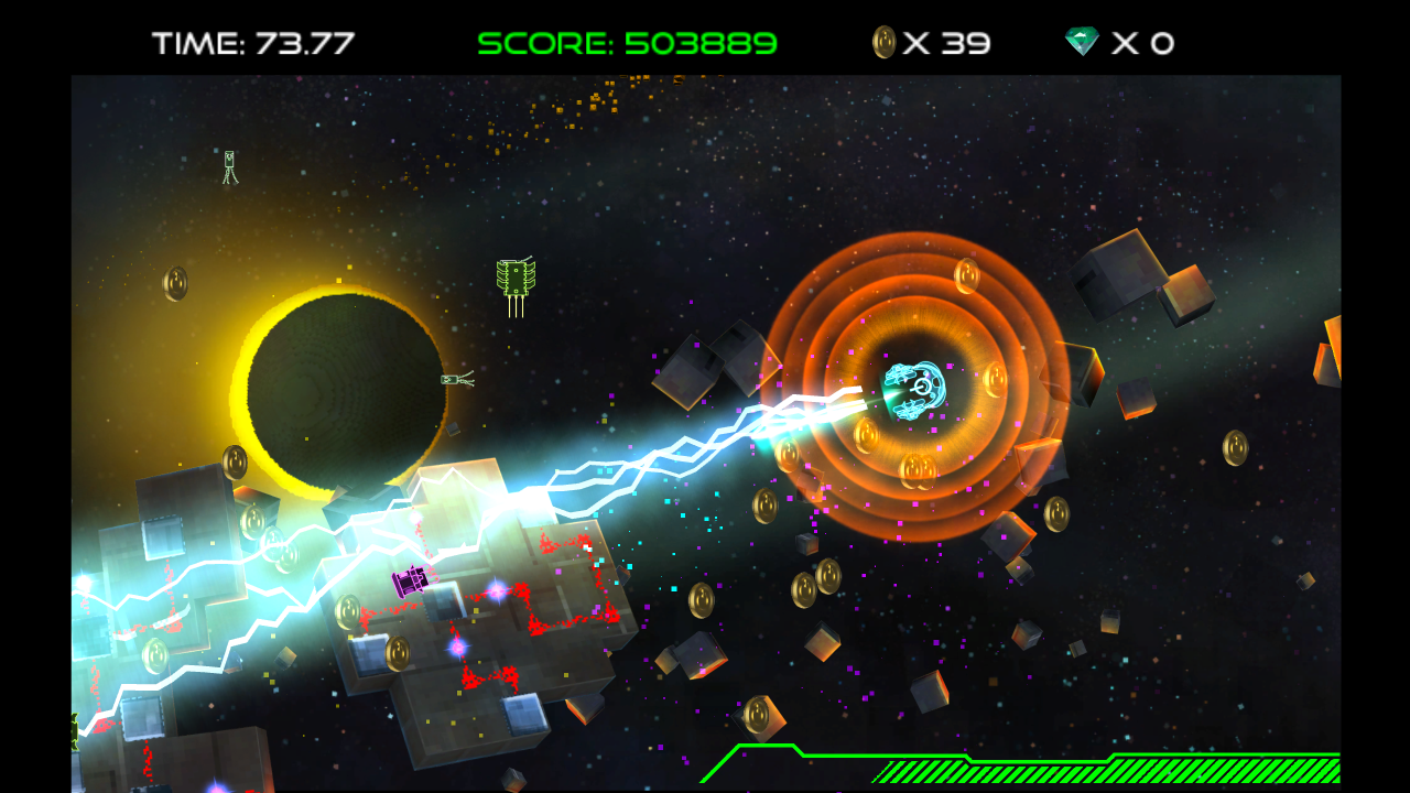 Dubstep is full of high energy and hard-hitting bass that pulls you into an exhilarating game experience. DubWars taps into the audio creativity of each artist and adds an exciting visual component. Survive the onslaught of enemy waves as you annihilate them with Giant Lasers, Sonar Blasts, and Explosions.