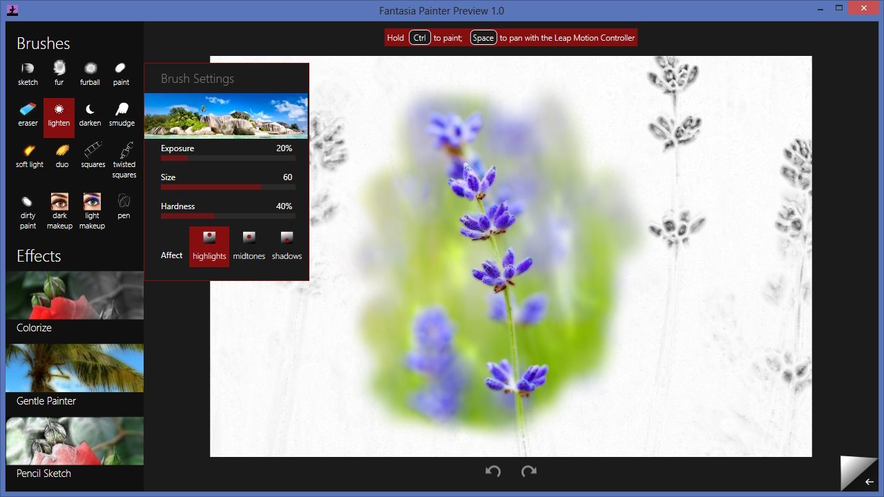 Even as early preview, Fantasia Painter's effects can be "painted" to part of image, so you can create works of art that are uniquely your own.