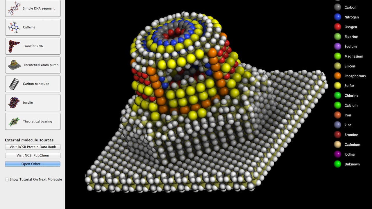 Molecules is a molecular visualizer. It is a file viewer that allows you to display three-dimensional renderings of molecules and manipulate them using a Leap Motion Controller. Molecules can be displayed in a window or in fullscreen mode, and Retina displays are fully supported.