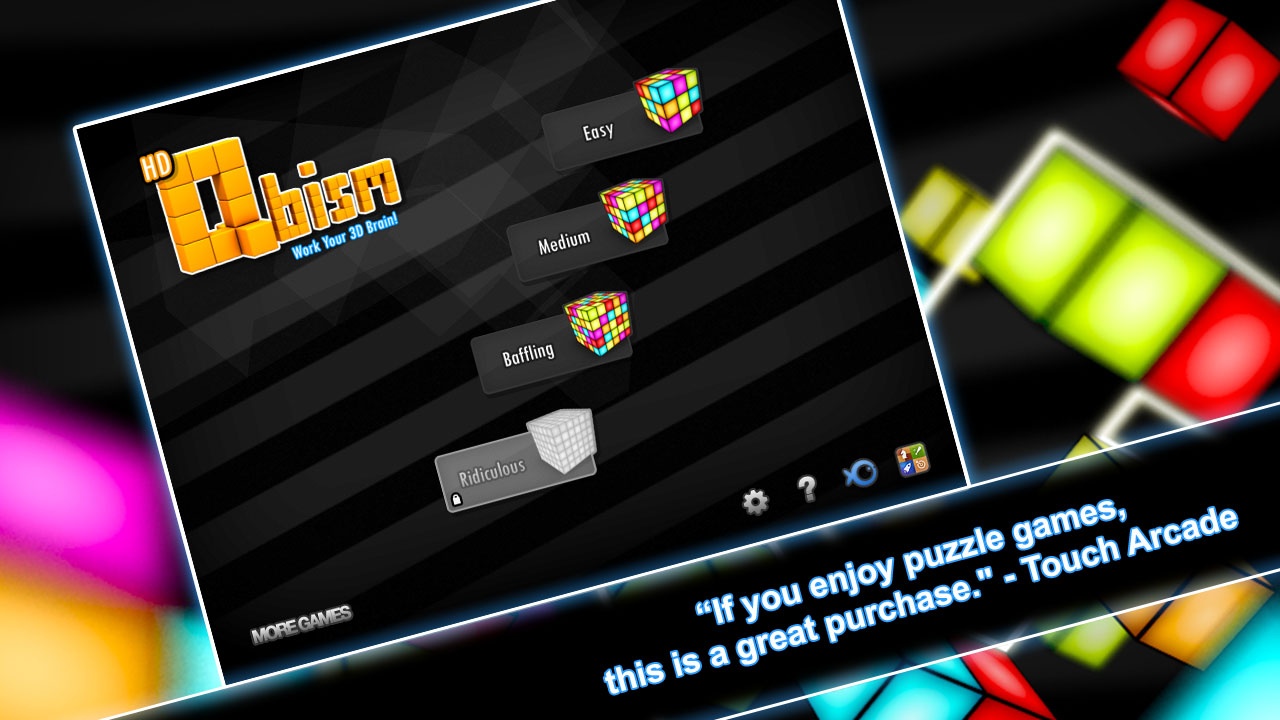 "Qbism is an interesting new game that stands out in the sea of puzzle games... The thing that makes me like this game the most is that it really caters to both casual and hard core players... If you enjoy puzzle games, this is a great purchase." - 4/5 TouchArcade.com