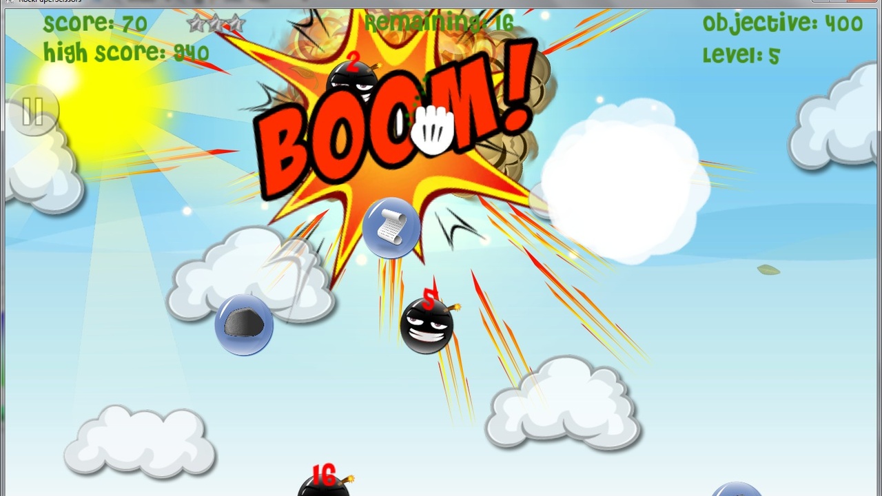 Choose your tool (rock, paper, or scissors) by making the corresponding gesture with your hand. Then, start popping away. Popping the same type of bubble in sequence gives you score multipliers.