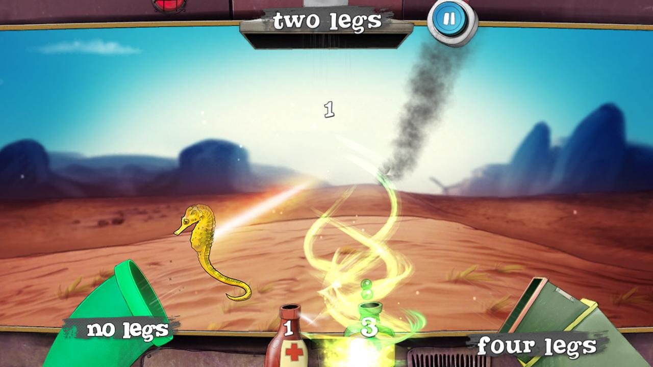 All kinds of junk clutters up our lives. In Sortee, you sort these ordinary items into categories. Sounds easy, right? Well, what color is an apple: red or green? How many legs does a seahorse have? Is an igloo cold, or round, or somebody's home -- or all three? When you start to think about it, even the simplest objects are defined by more than meets the eye.