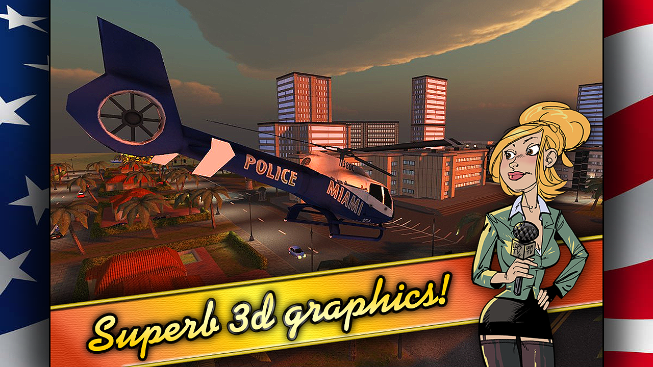 Live the life of Rob, the ultimate badass police officer, who gets things done! Fly his police chopper and use its spotlight to catch criminals on the loose! Bring law and order back to three great American cities – Miami, New York and Los Angeles*! Unveil comic frames drawn by one of the world’s best comic artists and help Rob succeed in his quest to deliver justice!