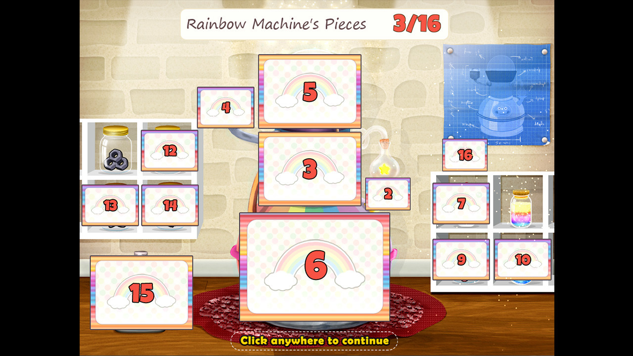 - Find all 16 pieces of The Rainbow Machine