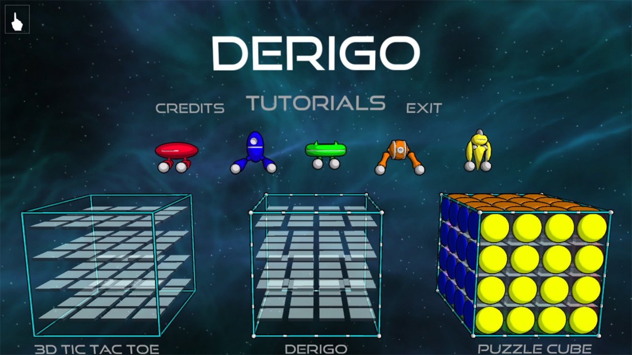 Control one of 6 droids while you master Derigo, 3D Tic Tac Toe, and the Puzzle Cube!