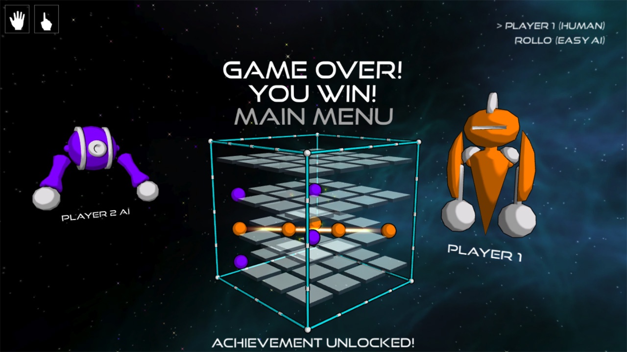 Play tic tac toe in 3D on a 4x4x4 grid! The rules are simple, but the strategy is deep. Just be the first to get 4 in a row in any direction! Take turns with a friend in the hotseat or challenge your skills against the computer.