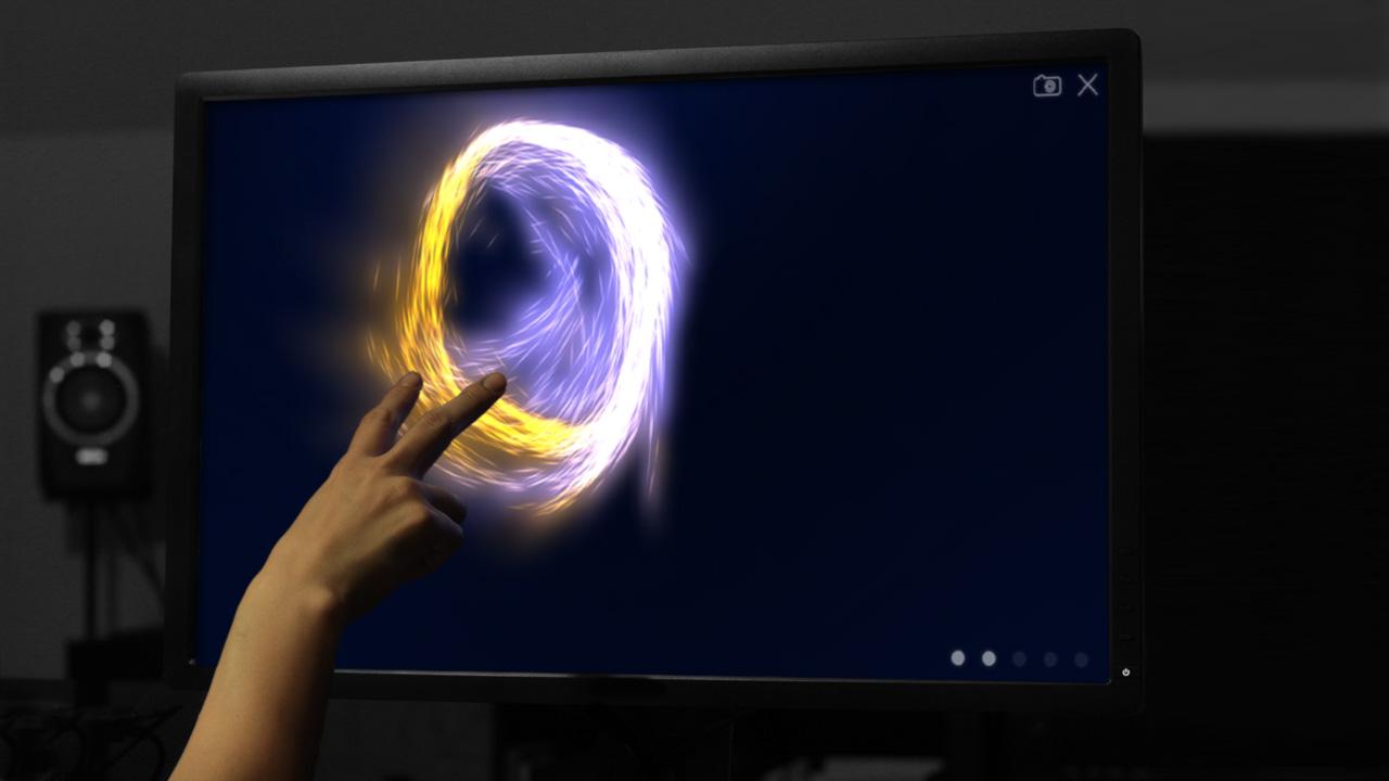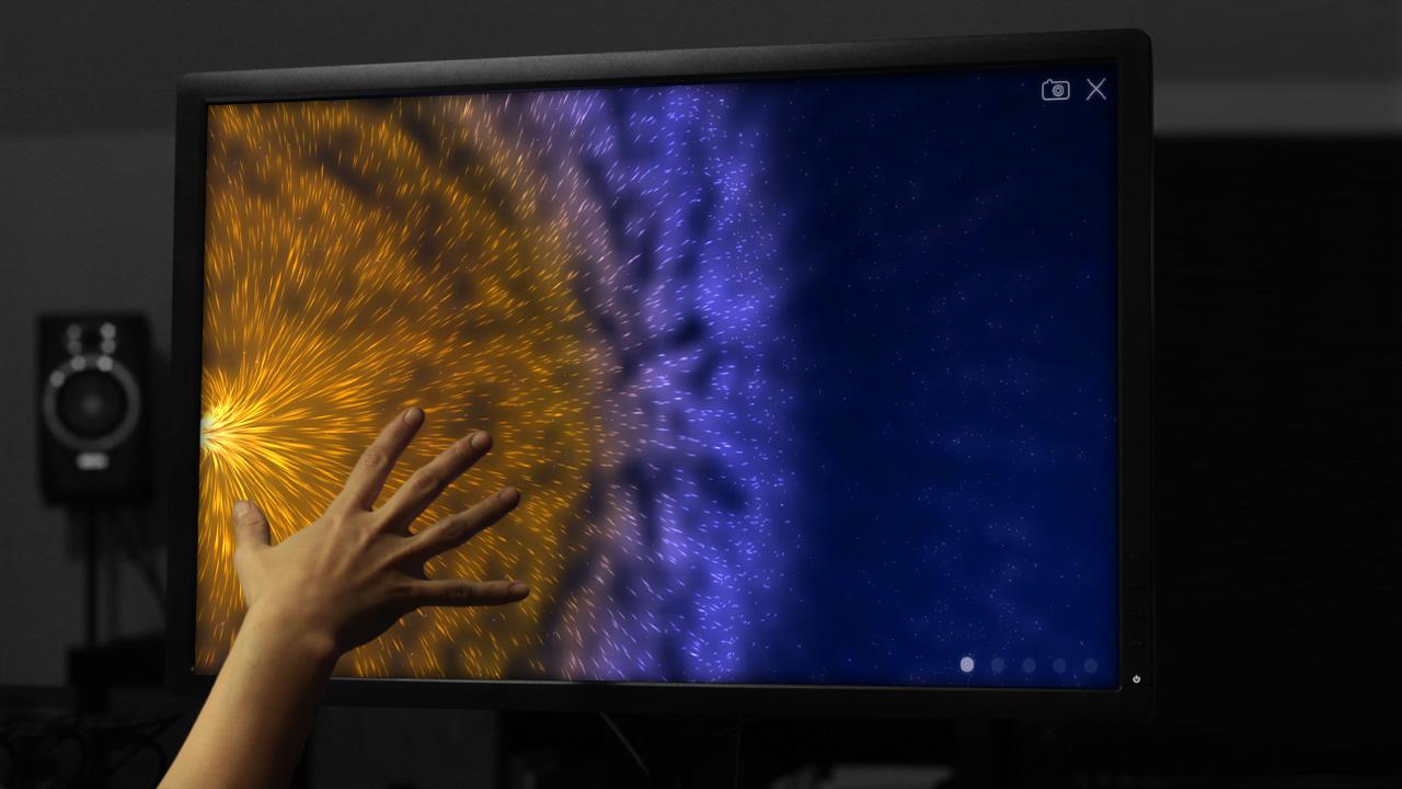 Naturally control a beautiful and responsive particle system with your hand. Feel like a real sorcerer and control the movement of the stars. There are no special settings, you can get incredible results in no time. Just try to use different number of fingers to get different interaction modes.