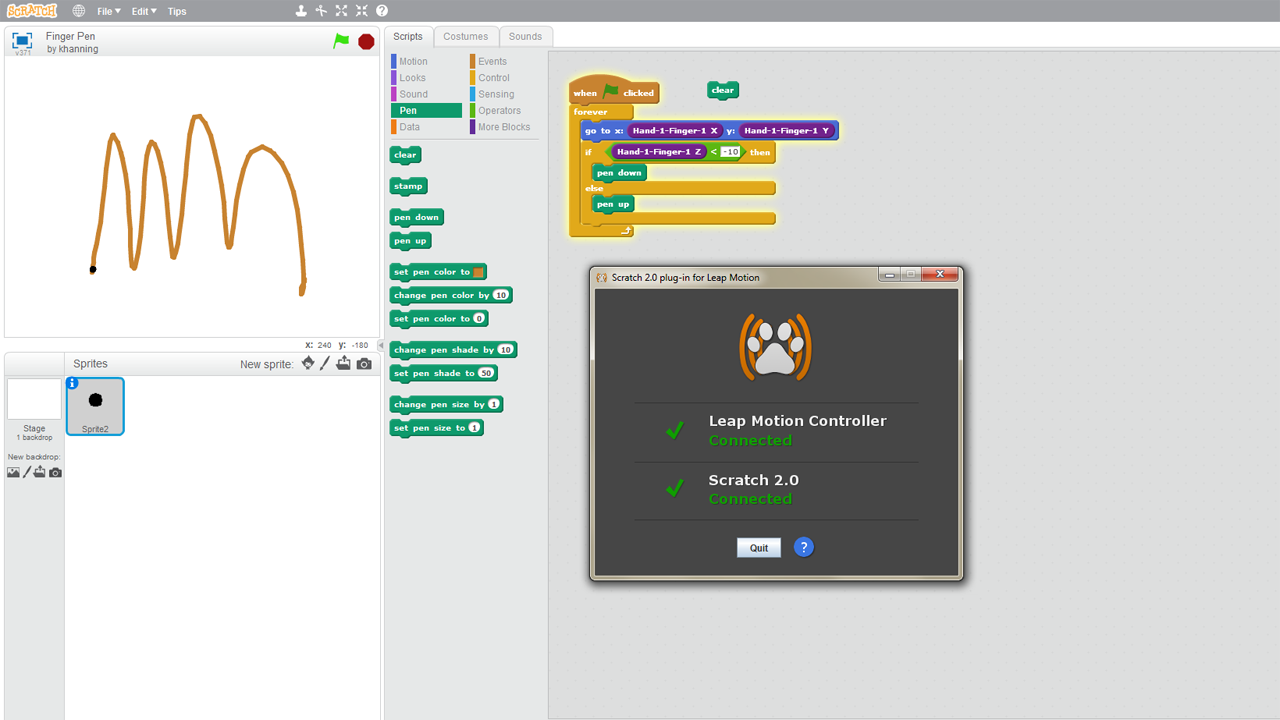 将Leap Motion体感控制器连接到你的 Scratch 2.0项目!