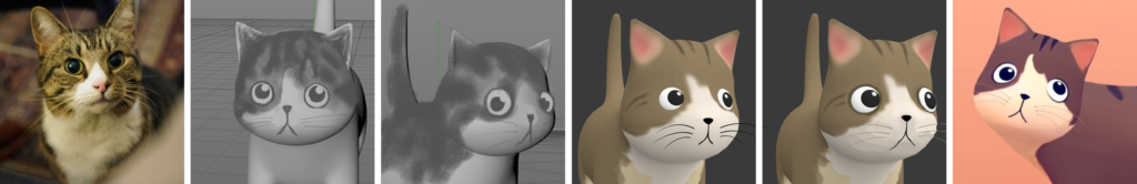 The scene presents the cat located at about chest height in front you, within an ergonomic area for both seated and standing hand manipulation. Having everything located comfortably within arm’s reach makes this “object on a pedestal” type of scene composition well-suited for any kind of close-range interaction.