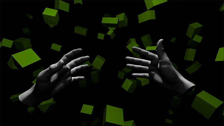 Initially, I thought Hovercast would use a “one-finger point” pose for the cursor. The motion tracking didn’t always perform well for this pose, so I made the cursor simply watch your fingertip position. This approach also improves the experience, as the user can move their cursor hand more freely.