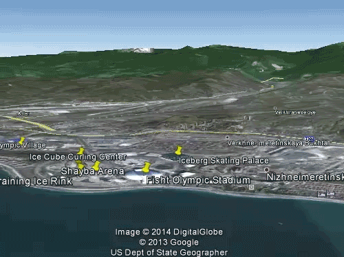 Ready to fly? If you haven’t already, get the app, enable 3D interaction, then download and open this KML file to be automatically transported straight to the heart of the Olympic Village. From Bolshoy Ice Dome to the Iceberg Skating Palace, you’ll be able to revisit all of your favorite venues without checking into a single hotel.
