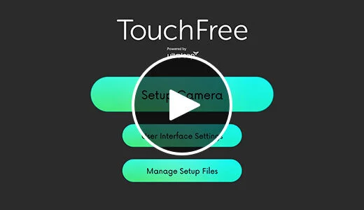 TouchFree is a software application that runs on an interactive kiosk or advertising totem. It detects a user’s hand in mid-air and converts it to an on-screen cursor.