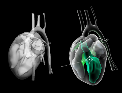 Thanks for your feedback! I completely agree with your statements about where we need to be heading in the near future. The biggest challenge associated with my project was building in strong visual cues to covey the depth of objects in a 3D environment. For example, the photo below shows my heart model using Unity's built-in Transparency shader (left) and the custom transparency shader I eventually made (right).
